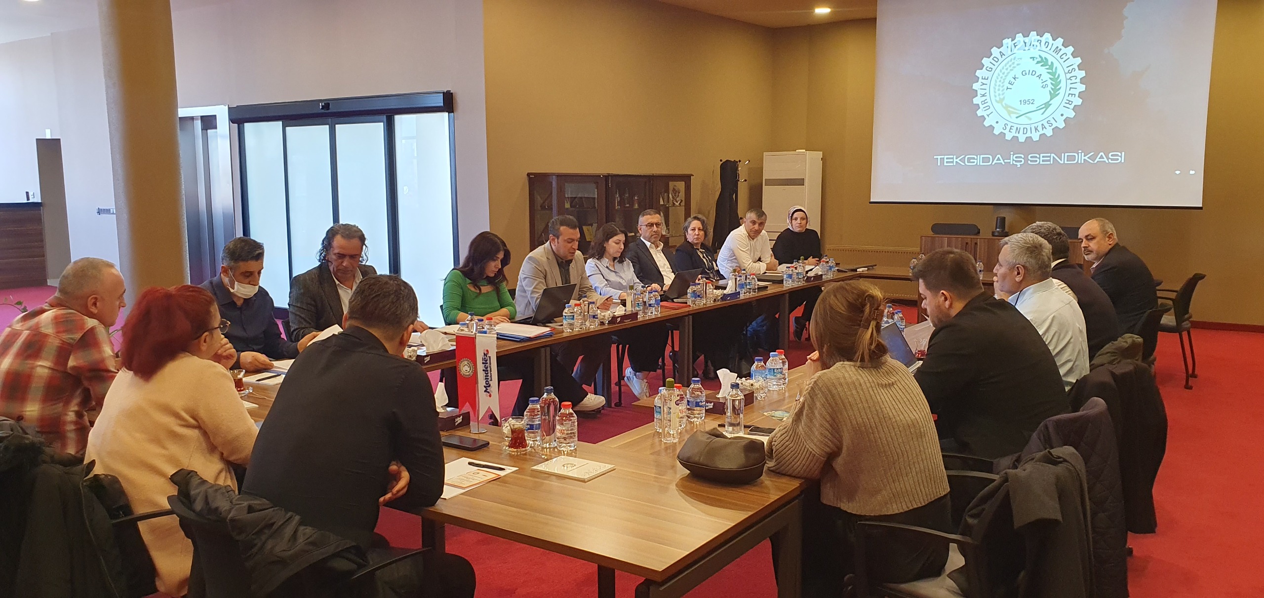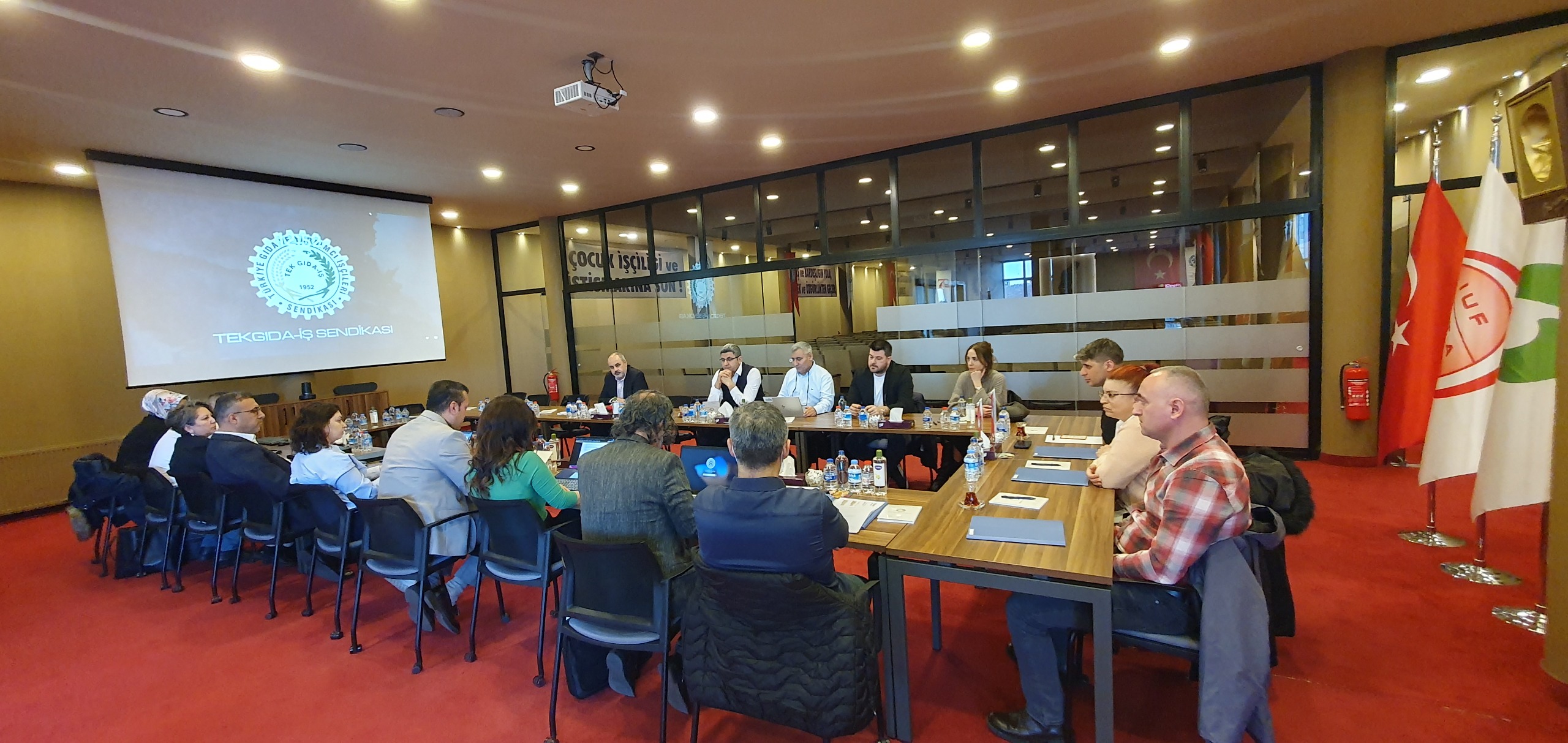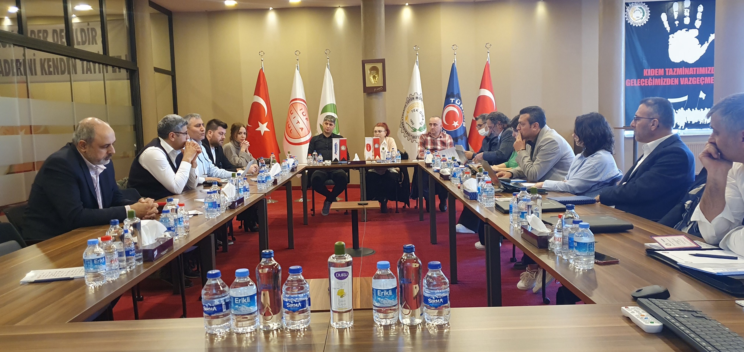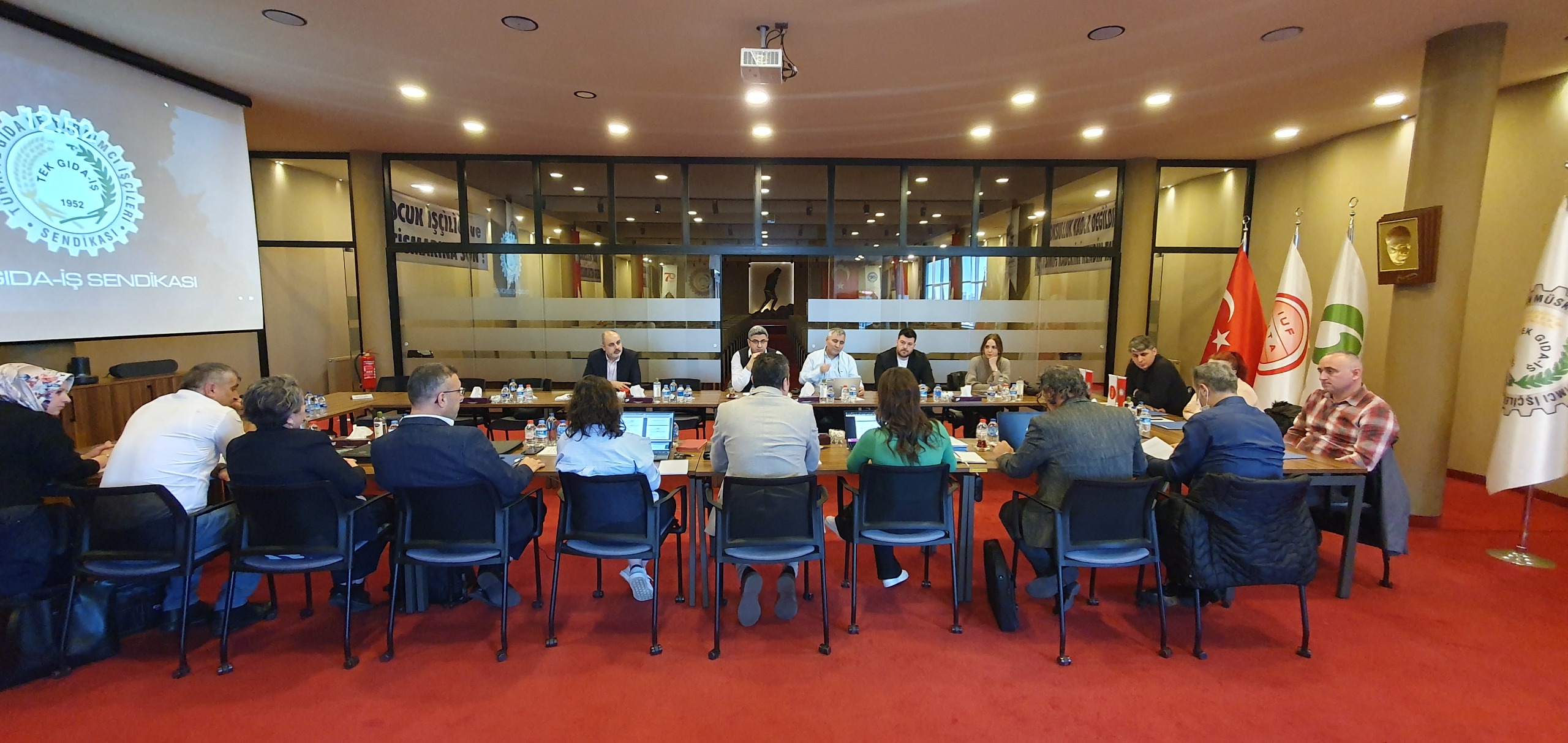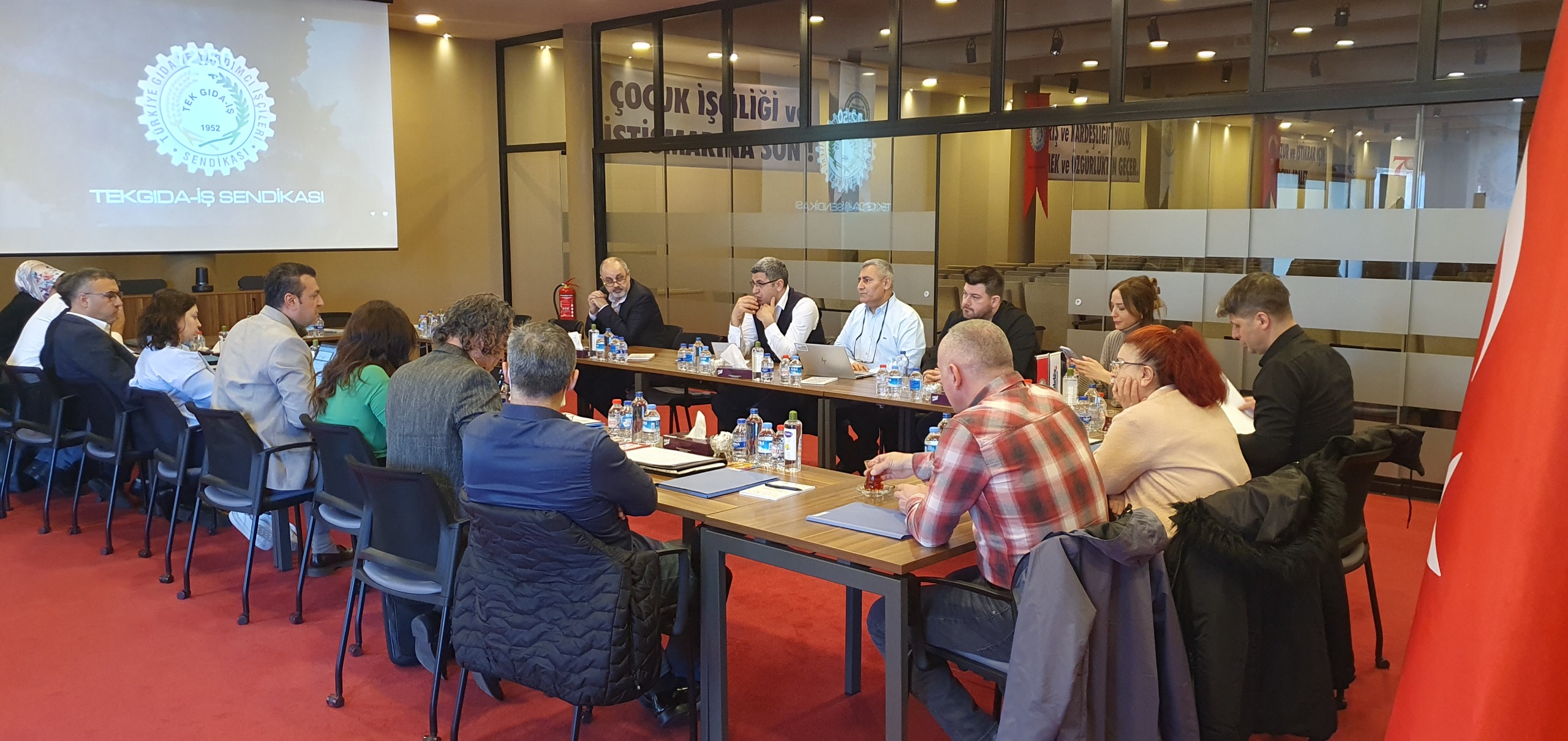 Sendikamızın genel merkezinde yapılan toplantıya sendikamız adına Genel Sekreterimiz İbrahim Ören, Anadolu Yakası Tuzla Şube Başkanımız Fikret Yılmaz, Şube Mali Sekreterimiz Mihriban Demircan, Endüstriyel İlişkiler ve Toplu İş Sözleşmesi Koordinatörümüz Avukat Nilgün Çelik Türkmen, Endüstriyel İlişkiler ve Toplu İş Sözleşmesi Koordinatörümüz İzel Erdoğan Kılınç ile işyeri temsilcilerimiz Kenan Aygün ve Gülcan Çömez katıldı.