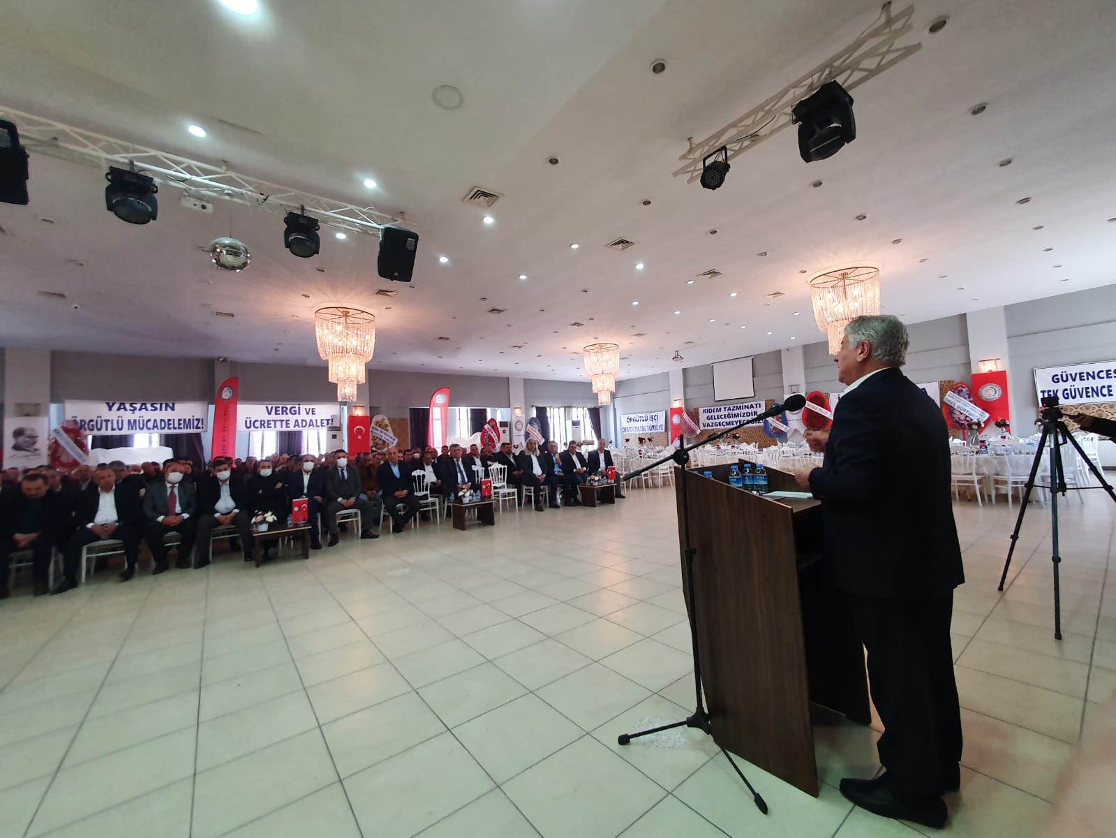 Konuşmasında eskiden Türkiye’nin kendi kendine yeten ülkelerden biri olduğunu hatırlatan Genel Başkanımız, son 20 yılda izlenen kötü politikalar nedeniyle buğdayı, bulguru, patatesi, canlı eti ithal eder hale, başkalarına el açar hale geldiğimizi, bunun bedelinin de işçi sınıfına ödettirildiğini söyledi. Ülkemizin iyi yönetilmediğini belirten Genel Başkanımız, insanların hiç olmadığı kadar mutsuz ve karamsar olduğunu, buna sebep olanların sırtımızda yük olduğunu ve istikrarlı bir yönetimin oluşturulmaması halinde bizleri daha da kötü günlerin beklediğini ifade etti.