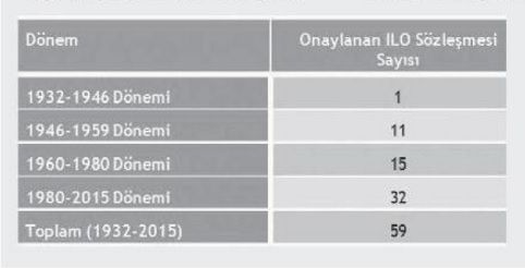 ULUSLARARASI Çalışma Örgütü (ILO); işçi, işveren ve hükümet temsilcilerinden oluşan üç taraflı bir örgüt olarak 1919’da kuruldu. Çalışma hayatına ilişkin uluslararası asgari standartlar getiren sözleşmeler kabul eden ve bunların denetimini yapan ILO’nun 187 üyesi bulunuyor. Türkiye 1932 yılından bu yana ILO üyesi. Uluslararası Çalışma Konferansı, ILO’nun en üst organı ve uluslararası çalışma parlamentosu niteliğinde. Konferansa her üye ülkeden bir işçi, bir işveren ve iki hükümet delegesi katılıyor. Konferansta uluslararası çalışma sözleşmeleri kabul ediliyor ve bu sözleşmelere ilişkin üye ülkelerin uygulamalarına ve ihlallerine ilişkin denetim yapılıyor. ILO, bugüne dek uluslararası çalışma standartlarına ilişkin 189 sözleşme ve 204 tavsiye kararı kabul etti. Bu sözleşme ve tavsiye kararları, uluslararası çalışma hukukunun asgari standartlarını oluşturuyor. Bu sözleşmelerden 8’i temel ILO sözleşmeleri olarak kabul ediliyor.