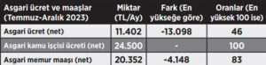 Kaynak ve açıklama: Asgari kamu işçisi ücreti giydirilmiş net olup 2023 yılı kamu toplu iş sözleşmesi çerçeve protokolüne göre hesaplanmıştır. Brüt kamu işçisi ücretinden ortalama yüzde 30 oranında vergi ve kesinti düşülmüştür. Asgari memur maaşı SBB verisidir.