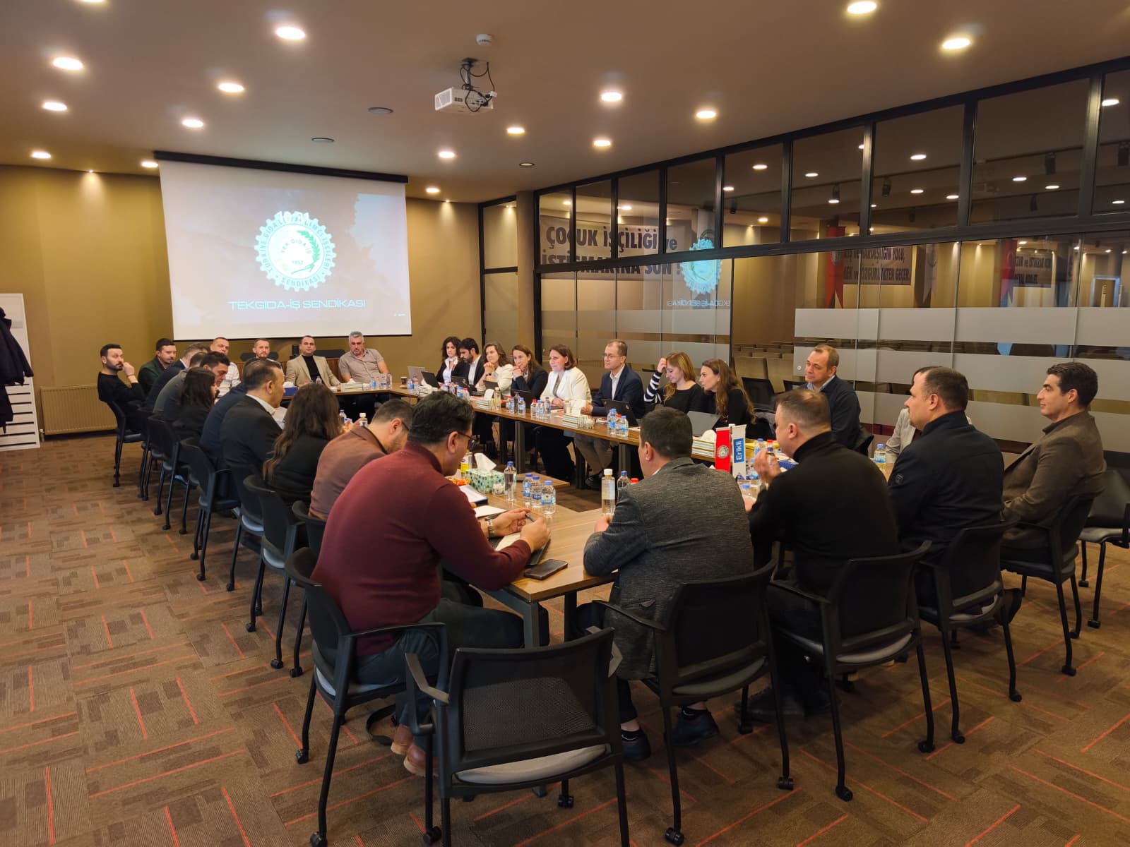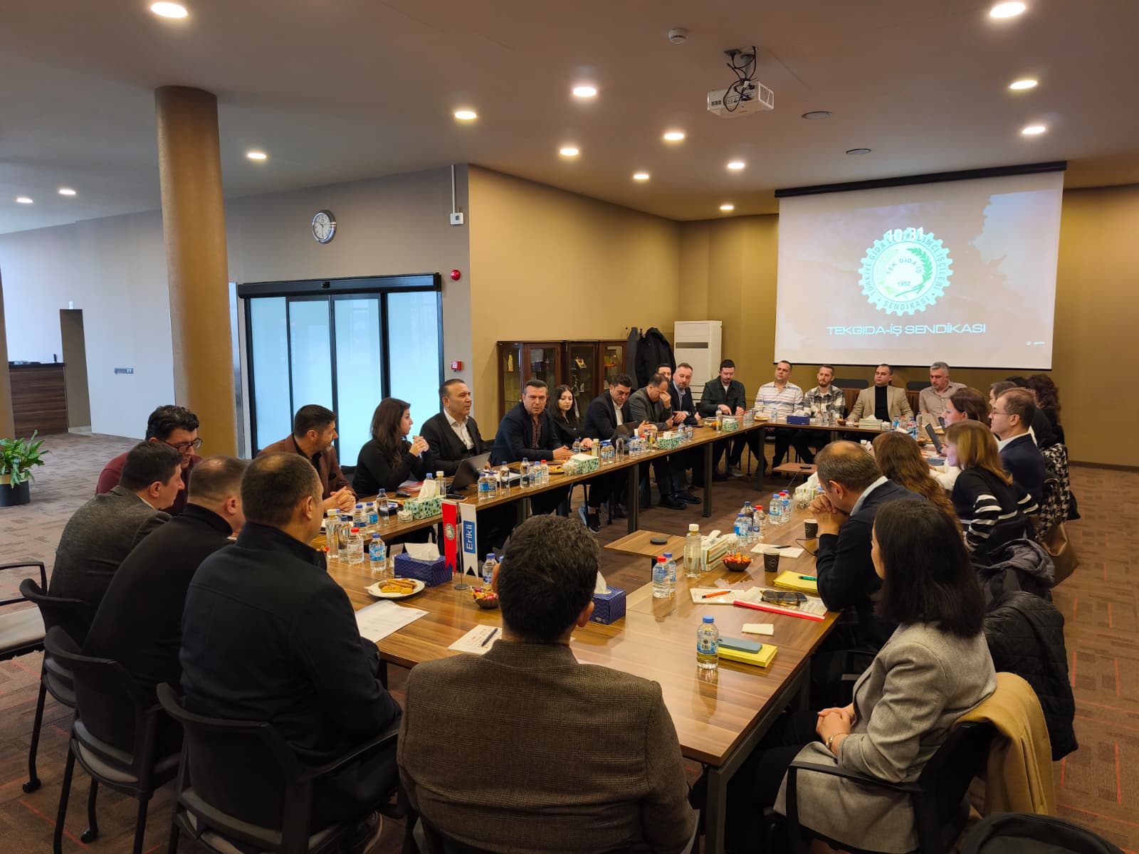 Toplantıya sendikamız adına; Genel Başkanımız İbrahim Ören, Genel Sekreterimiz Kemal Köse, Karacabey Şube Başkanımız Ergün Çarıkçı, Balıkesir Şube Başkanımız İbrahim Ökten, Karacabey Şube Sekreterimiz Cabir Başpınar, Karacabey Şube Mali Sekreterimiz Onur Kartal, Karacabey Şube Teşkilatlanma Sekreteri Ufuk Azcan, Karacabey Şube Eğitim Sekreteri Hüseyin Eryürekli, Genel Sekreter Yardımcımız Nilgün Çelik Türkmen, Endüstriyel İlişkiler Koordinatörümüz İzel Erdoğan Kılınç ile Nestle işyeri temsilcilerimiz Abdullah Batur, Deniz Yılmaz Cengiz, Aytaç Efe, İsmail Başak, Soner Küçük, CPT işyeri temsilcilerimiz Ender Baldan, Erhan Eker, Cüneyt Uysal katılım sağladı.