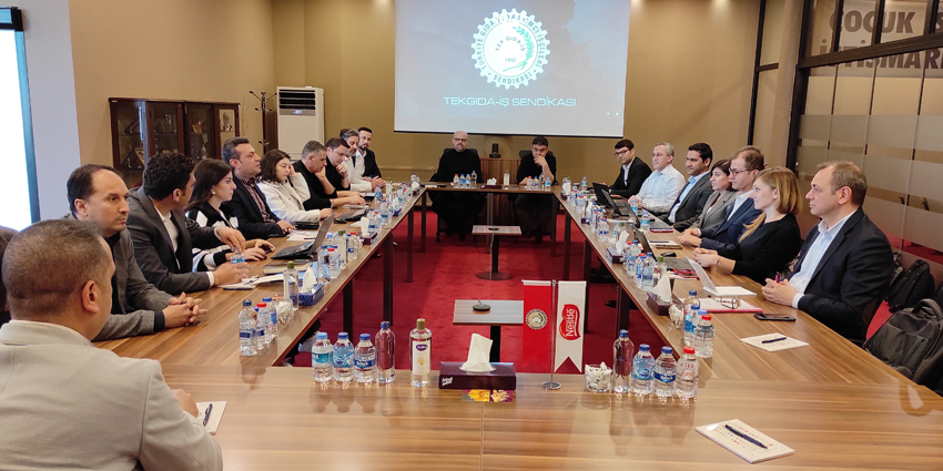 Sendikamızın genel merkezinde yapılan toplantıya sendikamız adına Genel Sekreterimiz İbrahim Ören, Bursa Karacabey Şube Başkanımız Ergün Çarıkçı, Şube Sekreterimiz Cabir Başpınar, Şube Mali Sekreterimiz Özer Tekeli, Endüstriyel İlişkiler ve Toplu İş Sözleşmesi Koordinatörümüz Avukat Nilgün Çelik Türkmen, Endüstriyel İlişkiler ve Toplu İş Sözleşmesi Koordinatörümüz İzel Erdoğan Kılınç ile işyeri sendika temsilcilerimiz Abdullah Batur, Başer Tutuk, Ferdi Patris, Tolga Tırakoğlu, Ufuk Azcan, Çağlar Aytaş ve Ender Baldan katıldı.