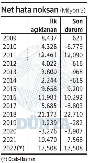 Bir kez daha vurgulayalım; ilk açıklamada net hata noksanın büyük olması, zaman içinde bu tutar küçülüyorsa, pek yadırganmaz. Ama bizdeki sorun bu; net hata zaman içinde küçülmüyor!