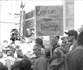 New York’taki “Wall Street’i işgal et” gösterilerinden esinlenen İngilizler, başkent Londra’da kapitalizm karşıtı gösterilerini sürdürüyor. Polisin Londra Borsası’nın önünde kamp kurmasına izin vermemesi üzerine, “Lond-ra Borsası’nı işgal et!” sloganıyla eyleme geçen protestocular, borsa binasının yakınındaki ünlü St. Paul Katedrali’nin önünde kamp kurdu. WikiLeaks’in kurucusu Julian Assange da göstericilere destek vermek için eylem alanındaydı. Gösterilerin başladığı cumartesi günü alanda Türk kökenli göstericiler de vardı. Oğlunun gösterinin organizatörlerinden biri olduğunu söyleyen Şerife Hanım, eyleme “Batsın bu dünya” döviziyle destek verdi.