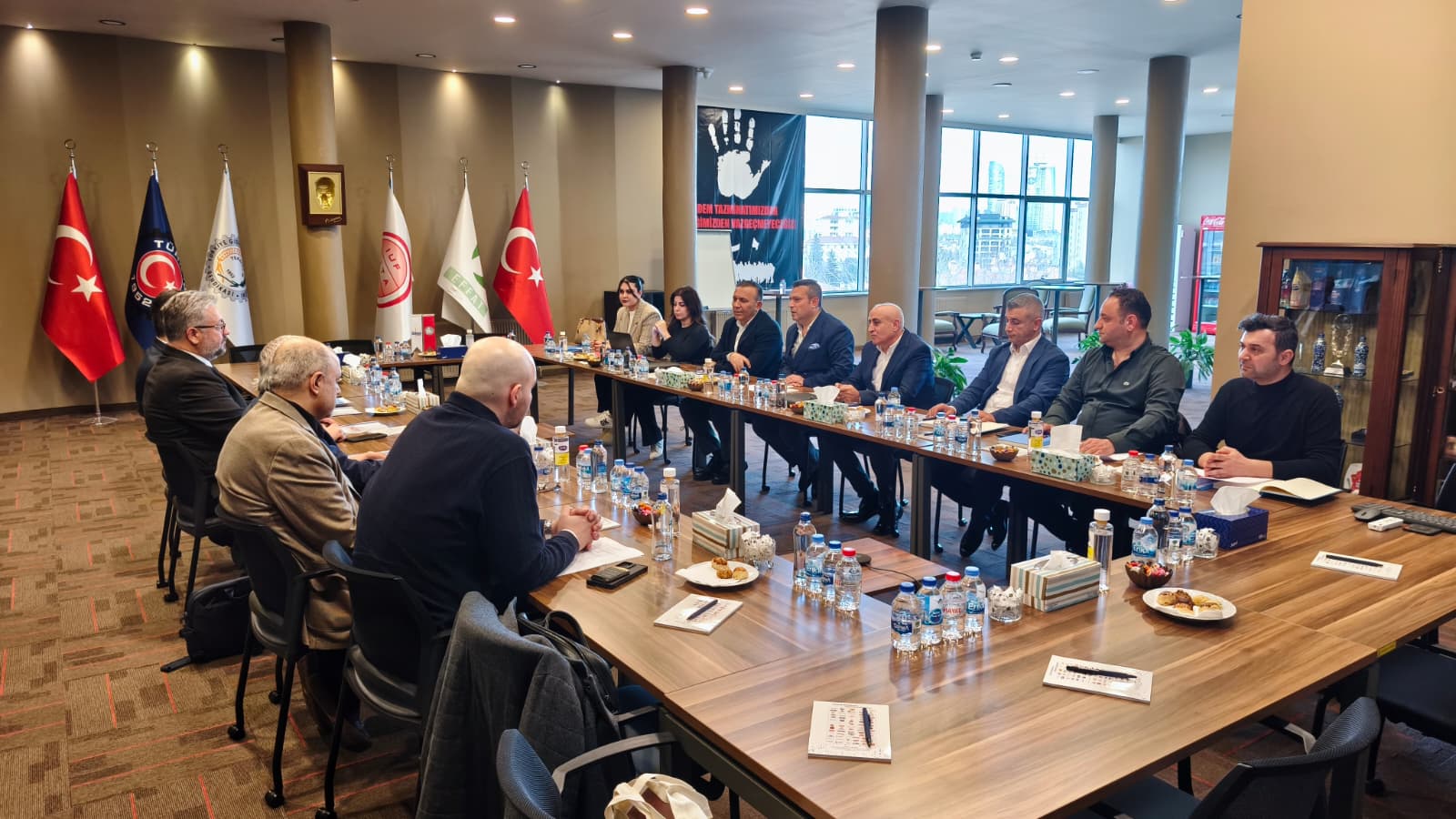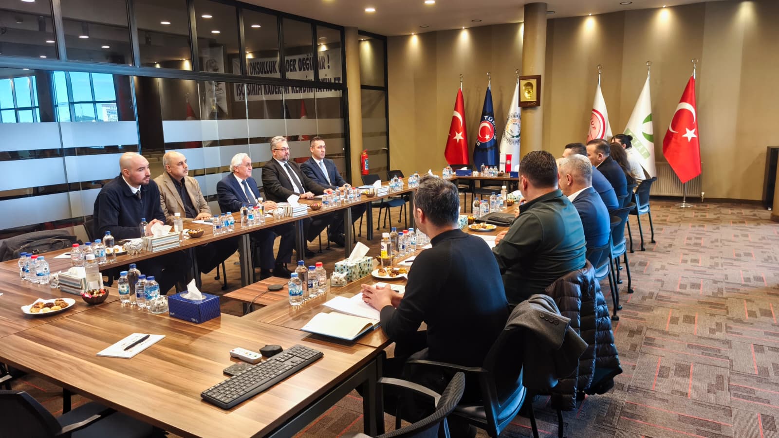 Toplantıya sendikamız adına; Genel Başkanımız İbrahim Ören, Genel Sekreterimiz Kemal Köse, Ankara 1 Nolu Şube Başkanımız Ali Solmaz, Genel Sekreter Yardımcımız Nilgün Çelik Türkmen, işyeri temsilcilerimiz Musa Sevgi, Serkan Yiğiter, Edip Şener ve Şube Kadın Komite Başkanı Emine Özkan katılım sağladı.