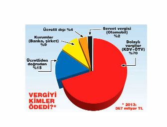 Peki kime ? Verginin yüzde 15’ini tek başına sırtlanan ücretliye mi? İşçiye, memura mı? Bu devlet, 846 lira net aylığı olan asgari ücretliden bile insafsızca tam 412 TL vergi ve SGK primi kesiyor. Yani işverene diyor ki, 2 işçiye, bir bana yatıracaksın. Şimdi bu af, 412 TL’lik vergiden, primden bir indirime mi gidiyor? Tabii ki hayır…İşçilerin, memurların stopaj yoluyla ücret ve maaşlarından kesilen gelir vergisi, toplam vergi gelirlerinin yüzde 15’ine ulaşıyor. Yani özetle verginin yüzde 70’ini KDV,ÖTV olarak tüketici, yüzde 15’ini ücret-maaş geliri sahibi çalışanlar ödüyor. Geri kalan yüzde 15’i lütfedip servet-sermaye sahipleri ödüyorlar.
