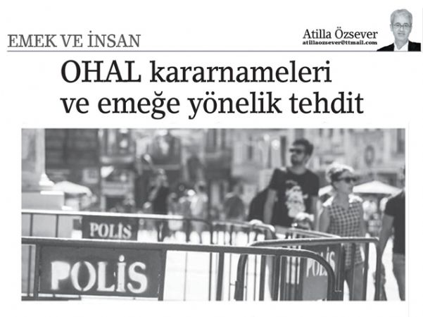 Olağanüstü halin (OHAL) 21 Temmuz 2016 tarihi itibariyle yürürlüğe girmesiyle birlikte emek hareketi için de kısıtlayıcı bir ortam söz konusu oldu. OHAL Kanunu, valilere basım ve yayım faaliyetlerinin kısıtlamanın yanı sıra; gösteri ve toplantı yürüyüşlerini engelleme, sendikal faaliyetleri sınırlayabilme, çalışma koşullanna müdahale edebilme yetkisi de veriyor. Yeni çıkarılan OHAL Kanunu’na dair yetki, Anayasa’nın 120. maddesindeki "Şiddet olaylarının yaygınlaşması ve kamu düzeninin ciddi şekilde bozulması" gerekçesine dayandırıldı.