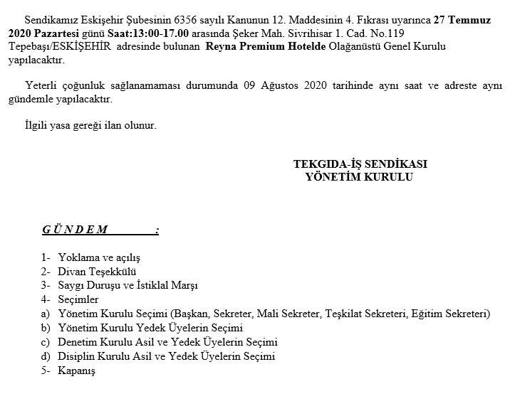 OLAĞANÜSTÜ GENEL KURUL İLANI