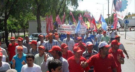 İZMİRLİ işçiler 15-16 Haziran işçi direnişinin 42. yılında Çiğli Organize Sanayi Bölgesi’nde yürüyüş yaptı. DİSK’in çağrısıyla bir araya gelen işçiler, toplu iş ilişkileri yasası ile 12 Eylül yasaklarının devam ettirildiğini söyledi. İşçiler grev yasaklarına ve sendikal hak ve özgürlüklerin kısıtlanmasına karşı mücadele edeceklerini açıkladılar.