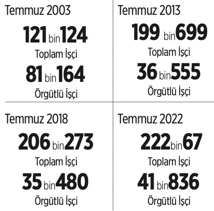 Aile ve Çalışma Bakanlığı’nın verilerine göre madencilik kolunda faaliyet gösteren işçilerin sendikal örgütlenme oranı son 20 yılda yarı yarıya düştü. 2003’te madencilik alanında yüzde 67 olan sendikal örgütlenme oranı 2022 yılında yüzde 18,83’e düştü. Öte yandan 2003’ten bu yana 9 büyük maden faciası gerçekleşirken toplamda 471 emekçi iş cinayetinden dolayı hayatını kaybetti.