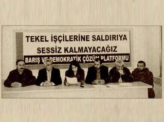EMEP, BDP, ESP, ÖDP Barış Anneleri ve KESK Şubeler Platformu’nun içerisinde yer aldığı siyasi partiler ve kitle örgütleri, TEKEL işçilerine olası bir saldırı durumunda sessiz kalmayacaklarını duyurdular. Ortak açıklama metnini okuyan İHD İstanbul Şube Başkam Gülseren Yoleri, işçilere ay sonuna kadar süre veren AKP Hükümeti’ni eleştirerek, olası bir saldırı durumunda bulundukları her yerde sokaklara çıkacaklarını duyurdu. (İstanbul/EVRENSEL)