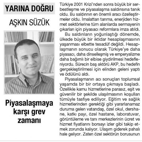 Türkiye 2001 Krizi’nden sonra büyük bir serbestleşMe ve piyasalaşma saldırısına tanık oldu. Bu saldırının en önemli aracı özelleştirmeler oldu. İmalattan tarıma, enerjiden hizmet sektörlerine tüm alanlarda sermayenin çıkarları için piyasacı reformlara imza atıldı. Bu saldırıların yoğunlaştığı dönemde, ülkede büyük bir iktidar hesaplaşmasının yaşanması elbette tesadüf değildi.