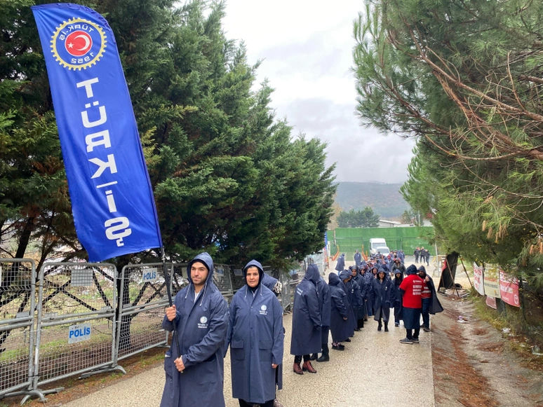 “Öyle bir noktadayız ki işveren ‘Ben Külliye’ye pastırma gönderiyorum. İstersem buraya iki katı çevik kuvvet gönderirim.’ diyor. Bu Ürdünlü şirketi koruyan kim artık görelim. Sayın Cumhurbaşkanımıza, devletimizin başına sesimizi duyurmak istiyoruz. Cumhurbaşkanımızın bu işi çözeceğine eminiz. O yüzden Çatalca’dan başlıyoruz ve Türkiye’nin her tarafındaki işçileri, hakkını arayanı, tüm kardeşlerimi ayrım gözetmeksizin buraya çağırıyorum.”