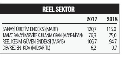 Son bir yılda, sanayi üretim endeksi düştü, imalat sanayi kapasite kullanım oranı daraldı, reel kesim güven endeksi güven sınırının altına indi.