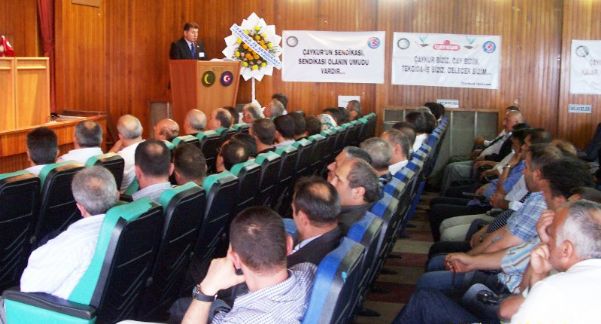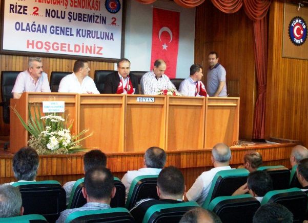 Türkiye’nin tüm kurum ve kuruluşları ile birlikte sendikal hayatın çok ciddi sınavlar verdiği; Özelleştirmelerin üretimden yana değil, yandaşları korumaktan yana yapıldığı; Kurumların adeta peşkeş çekilerek, yok pahasına satıldığı; Ekonomik kriz bahane edilerek, çalışanlarımızın yoğun ve haksız saldırılara maruz kaldığı; Çok daha yüksek borçlarla yaşamaya mecbur bırakıldığımız böylesine hassas bir dönemde, Tek Gıda-İş Sendikamızın Rize 2 Nolu Şubesi olarak yapacağımız 2. Olağan Genel Kurulumuzun heyecanı ve mutluluğu içerisindeyiz. Değerli Arkadaşlar Eğer bu bölgede çay ve Çaykur yok olursa, bu bölgenin halkı, esnafı, sanayicisi sefilleri oynar!.. Doğu Karadeniz Bölgesi hayalet şehirlerle dolu bir bölge haline gelir. Geçimini çaydan sağlayan 210 bin üretici aile mağdurlaşır. Yaklaşık Bir Milyon kişi için bu bölgeye en az 200 milyar dolar yardım yapılması gerekir! Ya da yoksulluğun daha da artacağı bu gelişmeyle bu bölge insanları kaderiyle baş başa bırakılıp; açlık ve sefalete terk edilir… Bizler Tek Gıda-İş Sendikası ve bölge halkı olarak, bütün bunların yanında kaçak çayın kesinlikle durdurulmasını, yakalanan kaçak çayların imha edilmesini ve çayın bir Milli Ürün haline getirilmesinden yanayız…