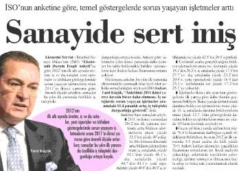 İstanbul Sanayi Odası’nın (İSO) “Ekonomik Durum Tespit Anketi”ne göre 2012’nin ilk altı ayında üretim, iç ve dış satışlar, yeni siparişler ve istihdam göstergelerinde sorun yaşayan işletmelerin oranı 2011’in ikinci yarısına göre önemli ölçüde artarken; sonuçlar bu yılın ilk yarısında özellikle iç talepteki durgunluğu ortaya koydu. Ankete göre, işletmeler yılın ikinci yarısında daha iyimser bir tablo beklemekle birlikte; işletmelerin üçte ikiden fazlası finansman sorunu çekiyor.