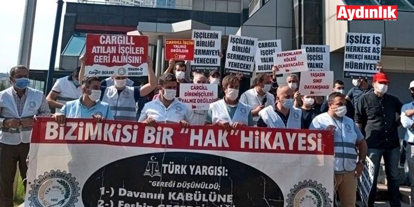Tekgıda-İş Sendikasına üye oldukları için işten çıkarılan Cargill işçileri, mücadelelerinin 909. gününde İstanbul´da bulunan Nestle Genel Müdürlüğü önünde işe dönme talebiyle eylem yaptı.