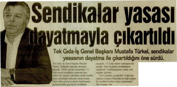 Tekgıda-İş Genel Başkanı Mustafa Türkel, sendikalar yasasının dayatma ile çıkartıldığını söyledi. Tekgıda-İş Genel Başkanı Mustafa Türkel, Eskişehir şubesine ziyarette bulundu.