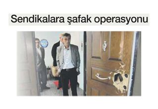 Polis, DHKP-C soruşturması kapsamında, DİSK´e bağlı Genel-İş ve Hak-İş´e bağlı Liman-İş Sendikası´na operasyon düzenledi. ? Sabahın ilk saatlerinde başlayan baskınlarda sendika binalarının kapıları kırıldı, 21 ayrı adresten 10 kişi gözaltına alındı.