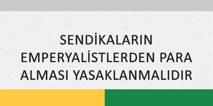Sendikalarımızın düşmanlarımızdan doğrudan veya dolaylı para alması yasaklanmalıdır.