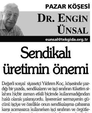 Değerli sosyal siyasetçi Yıldırım Koç, köşesinde yazdığı bir yazıda, sendikaların ve işçi sınıfının tüketim silahını hiçbir zaman etkili biçimde kullanmadığından haklı olarak yakınıyordu. İşverenler sermayenin gücünü işçiye ve özellikle onun sendikalaşma çabasına karşı acımasızca kullanırken işçi sınıfının ve örgütlerinin buna karşı tüketim gücünü kullanma yolunda bir gelenek oluşturamamalan düşündürücüdür.