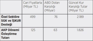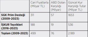 Tablo 2: AKP Döneminde Özel Sektöre SGK ve İŞKUR Destekleri ve Özelleştirme Gelirleri