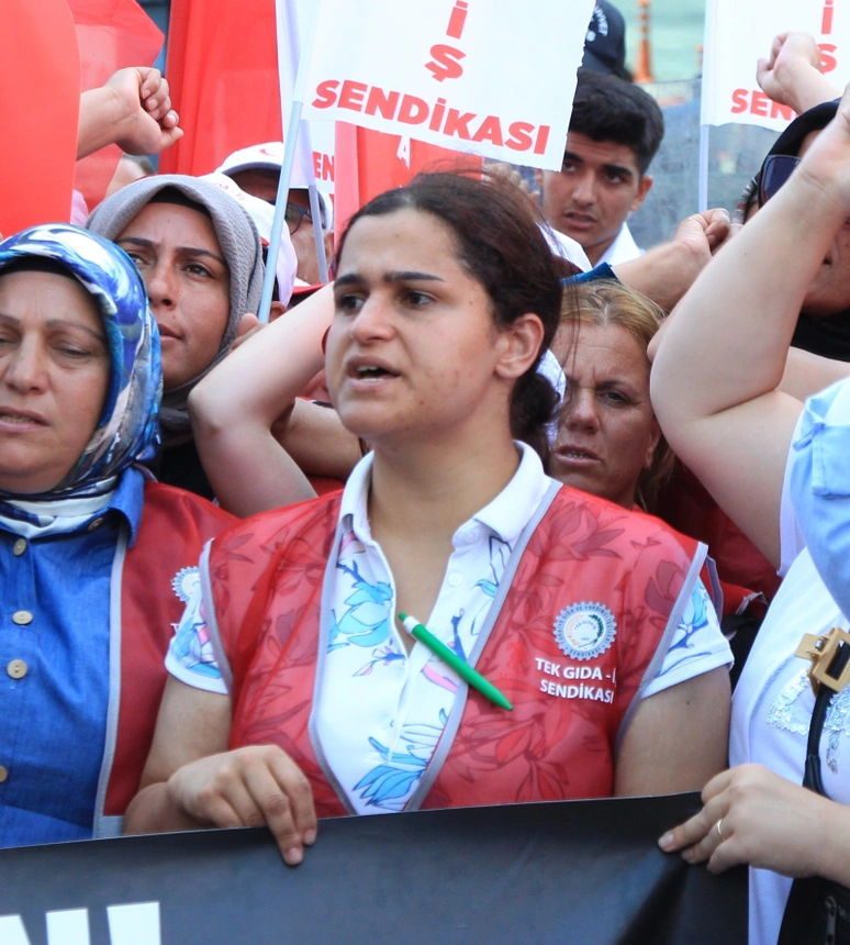 “Baş ustamız her cuma günü toplantı yapar ‘Yarın cumartesi. Gelmezseniz pazartesi de gelmeyin. Gözüm görmesin sizi.’ derdi. Biz itiraz ettiğimizde de her seferinde itilip kakıldık. Hoşgörülü olmadılar. Sendikaya üye olduğumuz için de hırsızlık suçlaması ile hepimizi işten attılar. İşimizi geri almak için buradayız.