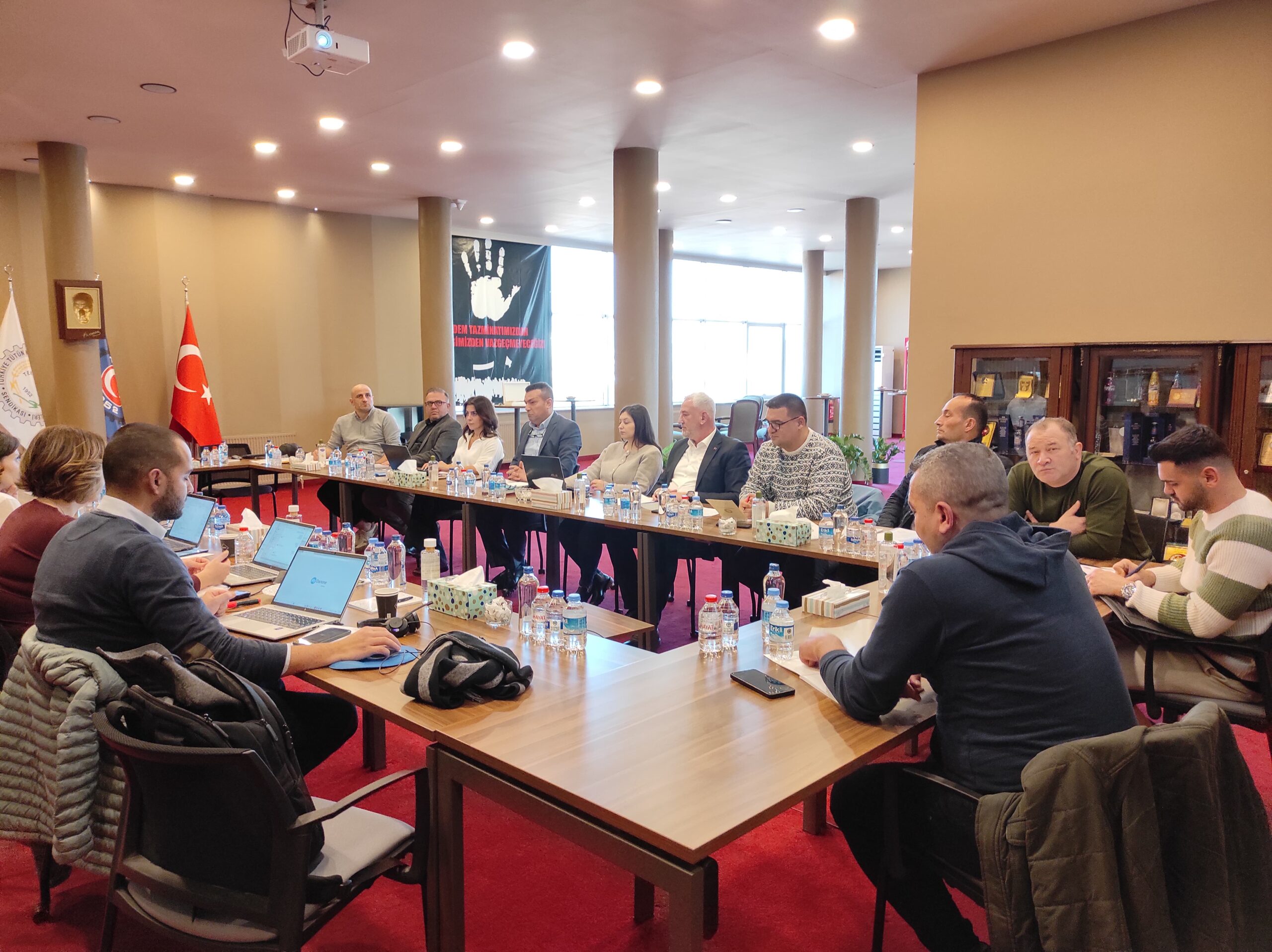 Sendikamızın genel merkezinde yapılan toplantıya sendikamız adına Genel Sekreterimiz İbrahim Ören, Kocaeli Şube Başkanımız Ali Bostan, Bursa Şube Başkanımız Zeki Ertürk, Kocaeli Şube Sekreterimiz Nedim İkiz, Genel Sekreter Yardımcılarımız Avukat Nilgün Çelik Türkmen ve İzel Erdoğan Kılınç ile işyeri temsilcilerimiz Berkan Kavçin, Ferhat Taner, Muhammet Keleş, Bayram Kuşcutopal ve Osman Yok katıldı.