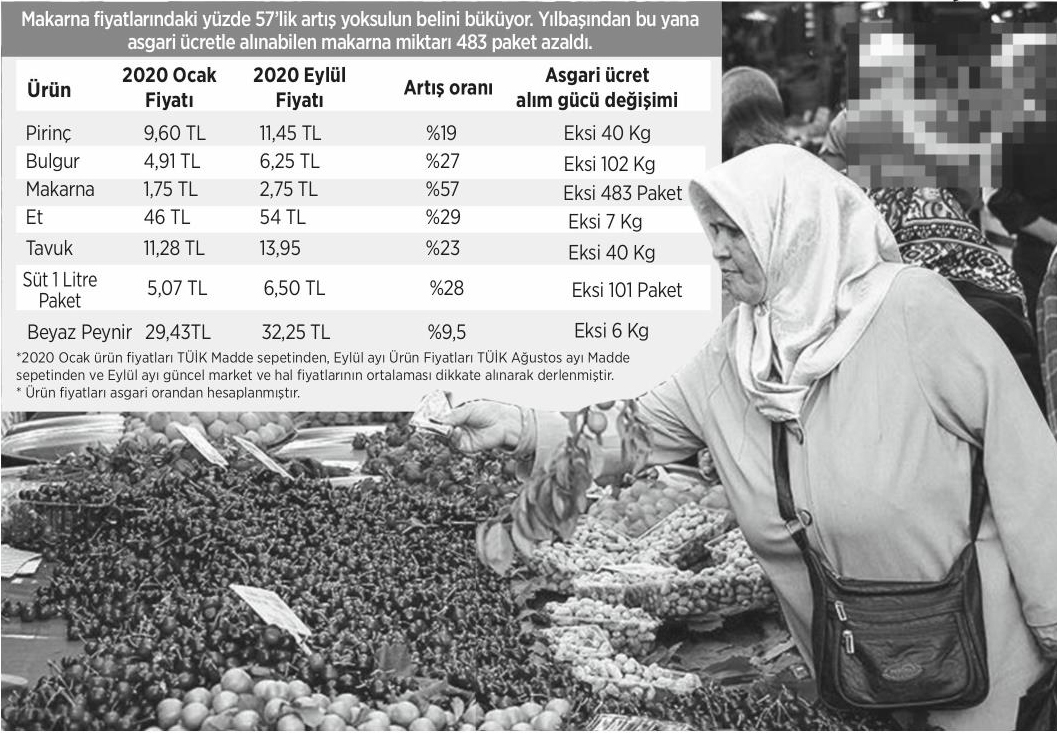 CHP Genel Başkan Yardımcısı Veli Ağbaba, yurttaşın alım gücüne dair hazırladığı raporda "Pirinçten domatese gıda fiyatları artmaya vatandaşın alım gücü de azalmaya devam ediyor. Hem ücretsiz izine çıkartılan hem de asgari ücretli vatandaş açlıktan ölme noktasına geliyor" ifadelerine yer verdi. Ağbaba’nın hazırladığı rapora göre son 9 aylık süreçte asgari ücretlinin sofrasından 93 kg biber, 86 kg domates, 53 paket margarin, 40 kg tavuk, 101 paket süt, 423 adet yumurta ve 48 kg kuru fasulye eksildi.
