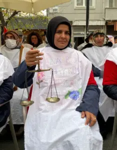 Kendisi 20, kızı 8 yıldır Polonez işçisi olan Aynur Şengül, iktidarın polisiyle yıldırma politikaları uygulamasına karşı, “Zannetmesinler buradan gideceğim. Ölene kadar direneceğim. Ben en başından beri hakkımı arıyorum. Hakkımı aradığım için kovuldum iş yerimden. Hakkımı ararken de ölürüm” diye konuştu.