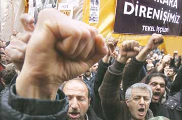 Konuşmasında sık sık TEKEL işçilerinin mücadelesinin tüm işçi sınıfının, güvencesizlerin mücadelesi olduğuna vurgu yapan Türkel, bu mücadelenin bitmediğini, büyüyerek süreceğini söyledi.