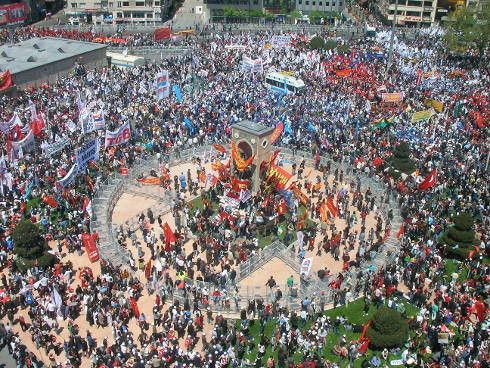 Taksim´de 32 yıl sonra kitlesel 1 Mayıs kutlamaları için emekçiler meydanı doldurdu. Dolmabahçe, Şişhane ve Şişli´den saat 10:00 civarında hareket eden yürüyüş kolları alana yerleşti. Sayısının 200 bini aştığı tahmin edilen kitle Gezi Parkı´nı da kullanmaya başladı.