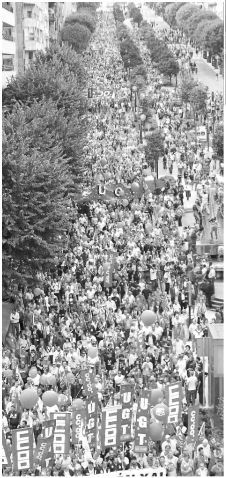 Krizin faturasını emekçilere yüklemeye çalışan AB ve üyesi ülke yönetimlerine tepkiler yükseliyor. Dün milyonların desteğinde ciddi bir genel grev yaşayan İspanya’da grevciler arasında kamu çalışanları 8 Haziran’daki katılımlarının üstünde rekor bir düzeye ulaştı. Brüksel ve Madrid’in dışında Atina, Lizbon, Ljublijana, Porto, Roma, Varşova ve Vilna’da kalabalık yürüyüşler olmuş. Önümüzdeki günlerde Bükreş, Paris, Prag ve Sofya’da yeni eylemler yapılması öngörülüyor. Avrupa basınında söyleşileri yayımlanan ASK Genel SEKRETERİ John Monks, “İktidarı elinde tutan liberal Avrupa, başı her sıkıştığında sosyal Avrupa’dan yemeye, kısmaya çalıştı” şeklinde konuşuyor. Monks, sözlerini şöyle sürdürüyor: “Aynı çevreler Yunanistan’ın çöküşünden sonra krizin yükünü sadece ücretliler ve tüketicilerden çıkartmaya çalışıyor. Elbette 1929-31 yıllarına dönülsün istemiyoruz. Ama paralarını Monte Carlo, Jersey veya başka vergi cennetlerine kaçıracaklarına geleceğe yatırım yapmaları zorunlu. Avrupa gençler için özel destek programları hazırlamalı, yenilenebilir teknolojiler güçlendirilmeli, yeni sanayi politikaları geliştirilmelidir. Avrupa çapındaki mücadelemiz önümüzdeki gün ve haftalarda yeni boyutlar kazanacaktır.”