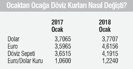 Bunun nedeni Euro’nun dolar karşısında değer kazanmasıdır. 2017 Ocak ayında Euro/ dolar paritesi 1.06 iken 2018 ocak ayında 1.2240 oldu.