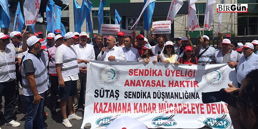 Açıklamada şöyle denildi: “Ülkemizde anayasal bir hak olan sendikaya üye olmanın önüne geçebilmek için işçilere baskı yapmak, işçileri işten çıkartıp çalışan diğer işçileri korkutarak diğer işçilerin birlik olmasını, sendikalaşmasını engellemek neredeyse bir patron geleneği oldu. Devletlerin yasalarını korumak ve uygulamakla yükümlü olan hükümetlerdir. 2012 yılından bugüne dek örgütlenme çalışması yürüttüğümüz Sütaş fabrikasında 10 yıldır 100 işçi, sendikamız üyesi olduğu için işten çıkartıldı. Mahkemelerde bu davaların hemen hemen tamamını kötü niyet tazminatı yani sendikal tazminat olarak kazandı. Bizim derdimiz hiçbir zaman işverene düşmanlık değil. Ancak bizi yok sayanları biz de yok sayarız. Biz bu mücadeleyi asla bırakmayız.”