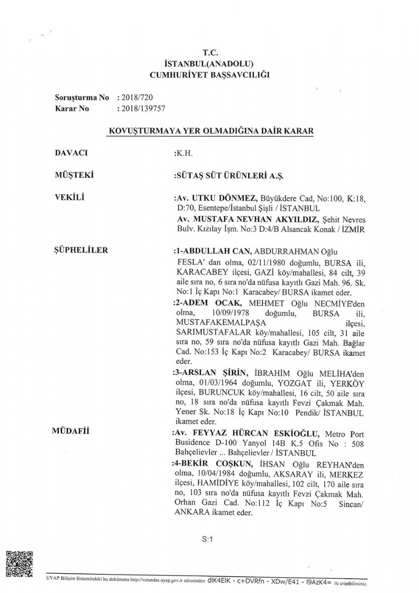 kampanyasına destek çığ gibi büyüyünce Sütaş patronu İstanbul Cumhuriyet Savcılığı aracılığı ile sendikamız yöneticileri ve sosyal medya paylaşımları yapan temsilcilerimiz hakkında suç duyurusunda bulunmuş ve tedbir kararı istemişti.