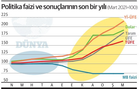 Geçen yıl eylül ayında başlatılan faiz indirimi Türkiye ekonomisinin şu an içinde bulunduğu durum için milattır. Eylül 2021, ilk düğmenin yanlış iliklendiği aydır. Eğer bu gerçeği görmezden gelir ve başlangıçtaki tercihin üstünde durmayıp “Bugün niye böyle oluyor” sorusuna yanıt bulmaya çalışırsak yanlış yaparız. Öncelikle irdelememiz gereken, bugün niye böyle olduğu değil, o gün niye öyle yapıldığıdır. Çünkü eylülde atılan ve devamı da gelen adımdan sonra bugünleri böyle yaşayacağımız gün gibi ortadaydı.