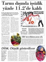 * Bu gelişmeler sonucunda tarım dışı işsiz sayısı 5 bin azaldı, tarım dışı işsizlik oranı yüzde 11.2 seviyesinde kaldı. Tarım dışı işsizlik oranı, Aralık 2011’den beri yatay seyrediyor. Betam, bu seyrin devam etmesini beklediğini vurguladı.
