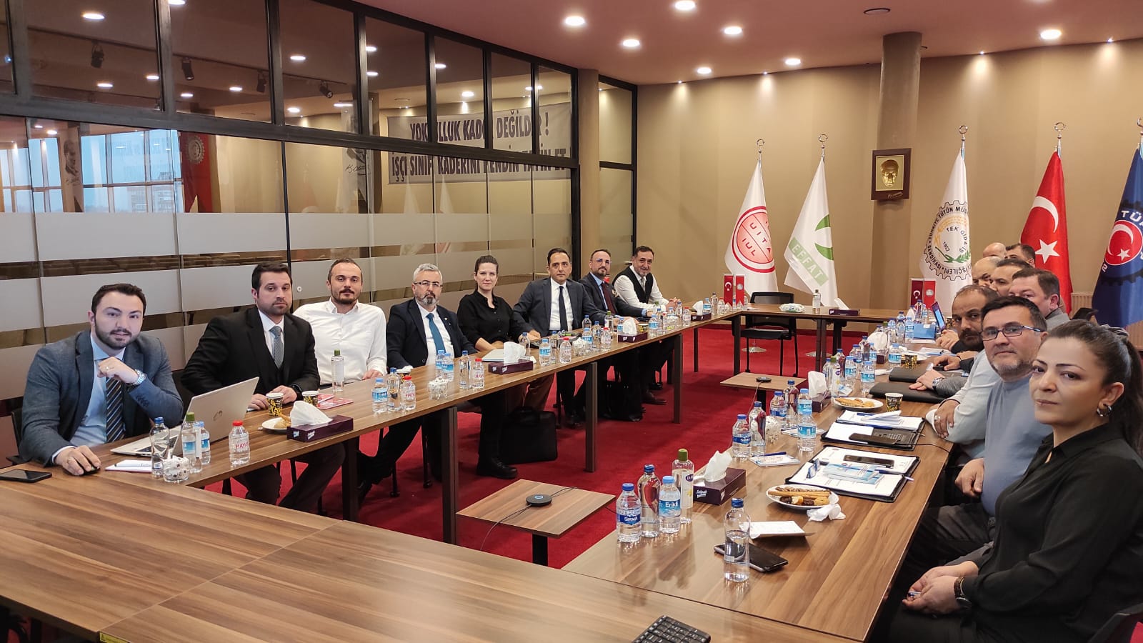Bugün İstanbul’da bulunan sendika genel merkezimizde yapılan toplantıya sendikamız adına Genel Sekreterimiz Mustafa Akyürek, Genel Eğitim Sekreterimiz Kemal Köse, Adana Şube Başkanımız İbrahim Sani Gökmen, Mustafakemalpaşa Şube Başkanımız Engin Öz, Trakya Şube Başkanımız Aytaç Göçmen, Endüstriyel İlişkiler ve Toplu İş Sözleşmesi Koordinatörümüz Avukat Nilgün Çelik Türkmen ile işyeri temsilcilerimiz Şafak Kınalı, Osman Bulat, Fatma Pınar Yücedağ ve Ahmet Çelik katıldı.