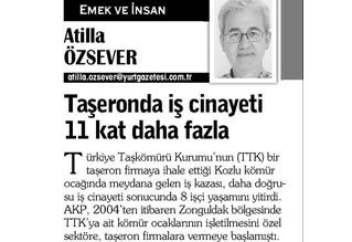 Kozlu’daki son facia da, Karadon ‘dakine benzer nedenler yüzünden meydana geliyor. Artık iş kazalan, bir "taammüden cinayet", yani bilerek adam öldürme noktasına gelmiş durumda. DİSK-AR’ın araştırmasına göre, 2002-2011 döneminde, yani AKP iktidarında kömür madenlerindeki iş kazaları yüzde 40 artış gösteriyor. Aslında iş cinayetlerinin katili belli: Özelleştirme ve taşeronlaştırma. AKP, şimdi yeni bir yasa hazırlayarak asıl işi de taşerona vermeyi amaçlıyor. Hey sendikalar ne zaman tam anlamıyla ayağa kalkacaksınız???