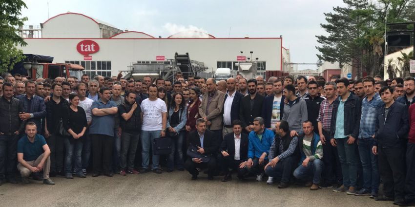 TAT GIDA ile Tekgıda-iş Sendikası arasında 1 Ocak’tan beri yapılan toplusözleşme görüşmelerinde anlaşma sağlanamayınca 7 Haziran’da greve çıkma kararı alan Tekgıda-iş ile TAT GIDA işçileri greve hazır. Bursa’daki Mustafakemalpaşa Konserve Fabrikası ile Sek Süt, izmir Pastavilla ve Aydın Söke’deki, TAT GIDA’ya bağlı fabrikalarda çalışan 2 bin işçi yarın sabah greve çıkıyor.