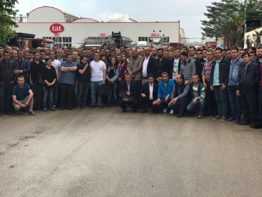 Genel SEKRETERİmizin yaptığı açıklama sırasında TAT GIDA çalışanları sık sık sloganlar attı ve kararlılıklarını ortaya koydu.