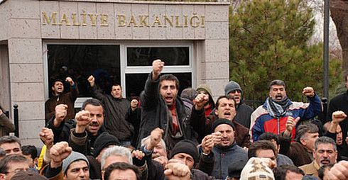 TEKEL İŞÇİLERİNDEN MALİYE BAKANLIĞI ÖNÜNDE EYLEM