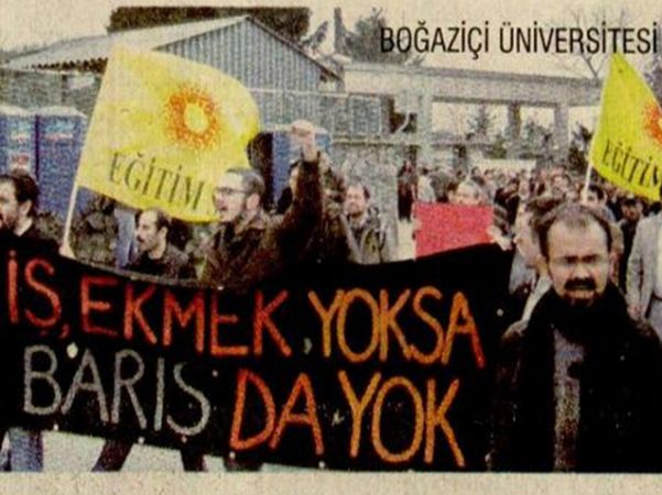 Boğaziçi Üniversitesi emekçileri ve öğrencileri, TEKEL direnişine destek için gerçekleştirdikleri eylemleri sürdürüyorlar. 22 Şubat Pazartesi gününden itibaren Kuzey Kampüs’te kurulan direniş çadırında TEKEL işçileri için siyah kurdela dağıtılıyor. Aynı zamanda direniş çadırında dayanışma amaçlı çay servisi de yapılıyor. ‘Her yer TEKEL her yer direniş’ ve İş ekmek yoksa barış da yok’ pankartlarıyla süslenen direniş çadırına, okul genelinden destek sürüyor. Dün Güney Kampüs’ten başlayan yürüyüş, Kuzey Kampus önünde gerçekleşen basın açıklamasıyla sona erdi. Basın açıklamasında, hükümetin TEKEL konusunda yalan söylediğine vurgu yapıldı. Boğaziçi Üniversitesi emekçileri ve öğrencileri, hafta sonu da Ankara’da olacak.