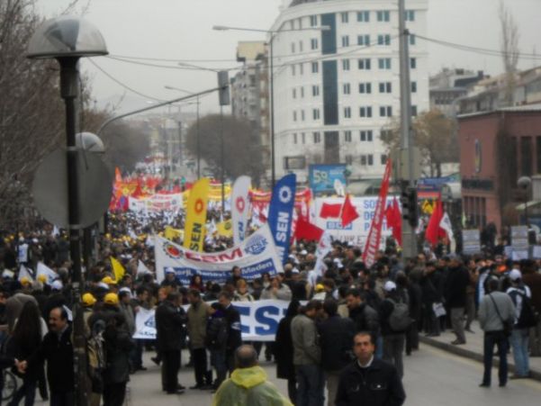 Türk-İş, DİSK, KESK ve Kamu Sen ile sivil toplum örgütleri eylemdeki TEKEL işçilerine destek vermek için Ankara’da yürüyüş düzenliyor.