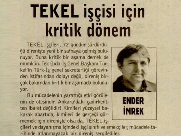 Daha kapsamlı değerlendirmeler yapılacağını biliyoruz. En azından sınıfın partisi için bunu söyleyebiliriz. Kritik bir aşamaya gelip dayandığı gerçeğine gelince; Mustafa Türkel’in, TÜRK-İŞ genel sekreterliğinden istifa etmesinden dolayı değil, direnişin geldiği aşama bakımından kritik bir aşama. Bu olumsuz bir durum değil, iki sınıf arasındaki mücadelede kritik bir aşamadır. İki sınıf için de geçerli bir durum. Sermayenin temsilcisi AKP Hükümeti için de kritik bir aşama. Ancak TEKGIDA-İŞ Sendikası Genel Başkanı Mustafa Türkel’in, TÜRK-İŞ genel sekreterliğinden istifa etmesi, beklenmedik bir gelişmeydi ve ilk anda işçiler içinde büyük bir şaşkınlık yarattı.