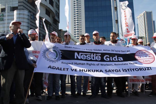 Tekgida-Is, Turkish food and allied workers trade union, called Nestle Gida to reinstate 28 workers that were fired with the cooperation of pro-governmental union and the Nestle managers. Nestle Gida is chocalote unit of the international company in Turkey.