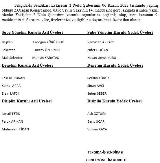 Eti Kraker fabrikasında üretim ekip lideri olarak çalışan üyemiz Halil Çiftçi, geçirdiği kalp krizi neticesinde vefat etmiştir. Merhuma Allah’tan rahmet kederli ailesine, sevdiklerine ve çalışma arkadaşlarına başsağlığı dileriz.
