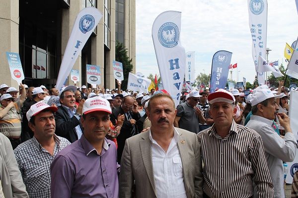 Hava-İş Sendikası’nın havacılık işkoluna getirilmek istenen grev yasağı ve arabulucu tespitine yapılan haksız itiraz nedeniyle sözleşme görüşmelerini akamete uğratan THY yönetimini protesto amacıyla, Genel Müdürlük önünde düzenlediği kitlesel basın açıklamasına Sendika Güç Birliği Platformu Dönem Sözcüsü olarak Genel Başkanımız Sn. Mustafa TÜRKEL ve sendikamızın Genel TEŞKİLATlanma SEKRETERİ Sn. Recep Ali ÇELİK, İstanbul Şube Başkanlarımız, yöneticilerimiz ve temsilcilerimiz ile katıldılar.