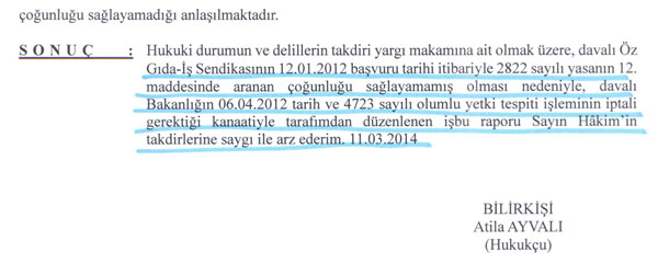 Bilirkişi Raporu ve Mahkeme’nin kararı, iddialarımızda ne kadar haklı olduğumuzu bir kez daha ortaya koydu: Çalışma ve Sosyal Güvenlik Bakanlığı “alkolsüz içecek imalatı” yapılan iki işyerini ve bu işyerinin 136 çalışanını buharlaştırarak, olmayan çoğunluğu Öz Gıda-İş’e verdi ve böylece hukuku bir kez daha ayaklar altına almış oldu.
